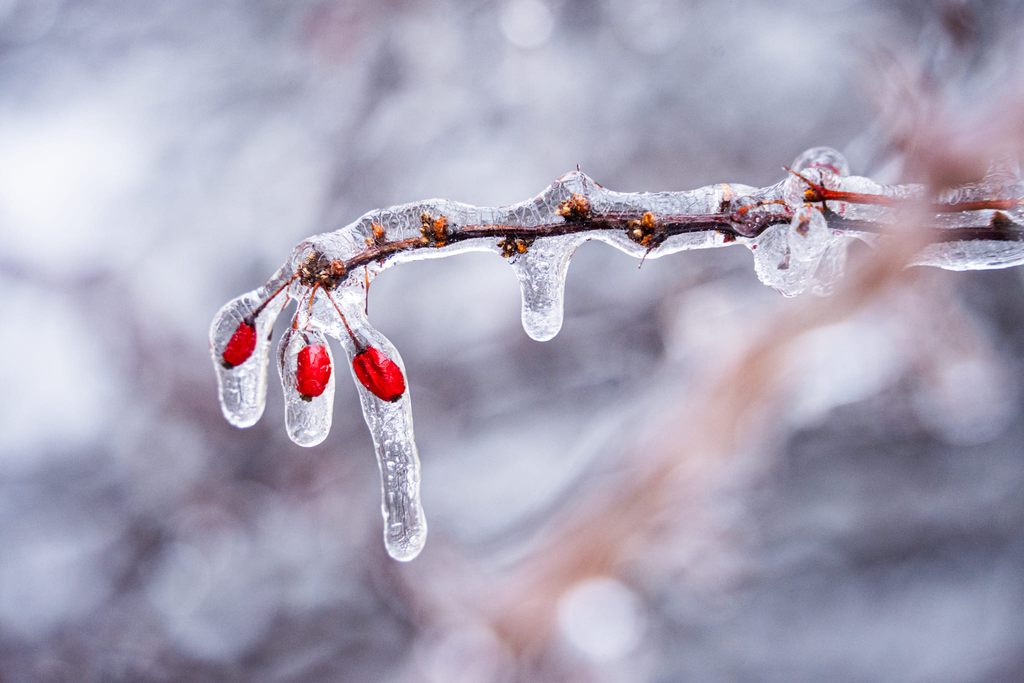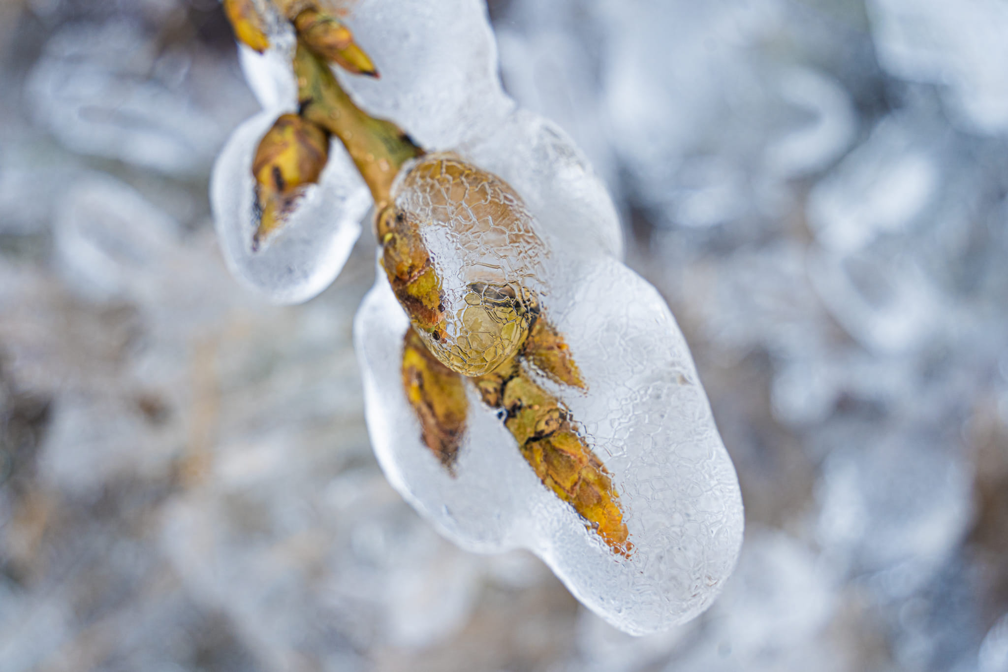 Dans leur unicité, ces gros plans révèlent toute la texture de la glace autour de la branche, les fruits et les bourgeons qui sont eux aussi emprisonnés. Même si tout est figé, on retrouve un côté lumineux, comme s’il était clair que la vie allait reprendre le dessus.