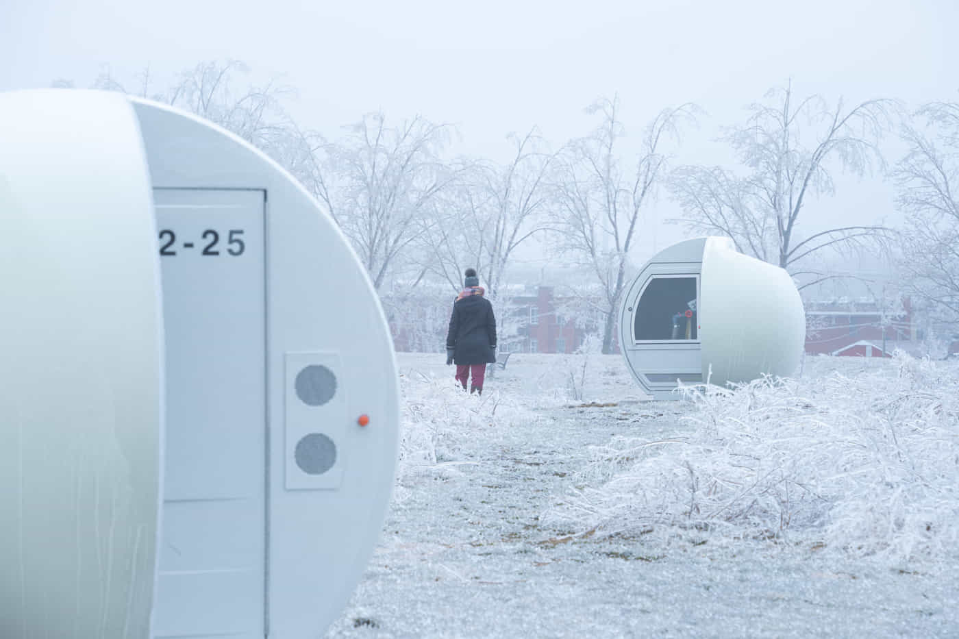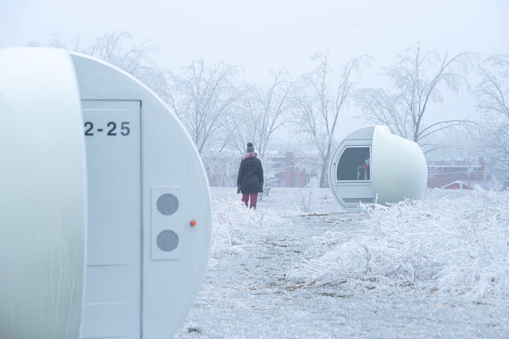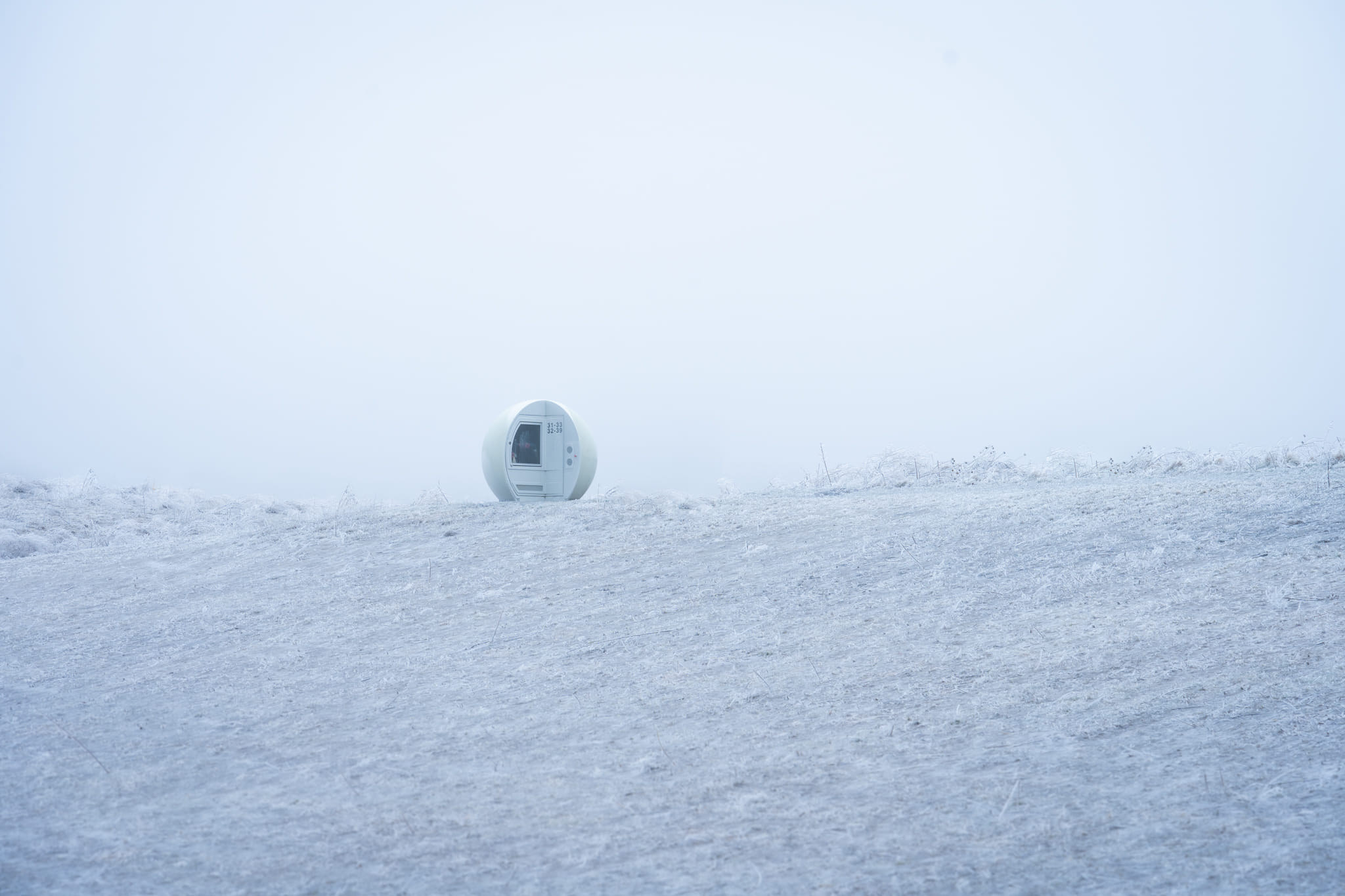 Ce paysage extraordinaire, aux allures lunaires, vient montrer comment une scène si simple devient un lieu directement sorti des astres. En quelques heures, le paysage d’un ancien site d’enfouissement devient le lieu d’atterrissage de navettes spatiales directement venues de l’espace. La capsule blanche sur fond blanc laisse émaner un décor minimaliste et unique, comme s’il n’appartenait pas à notre planète.