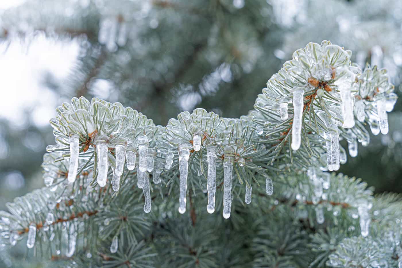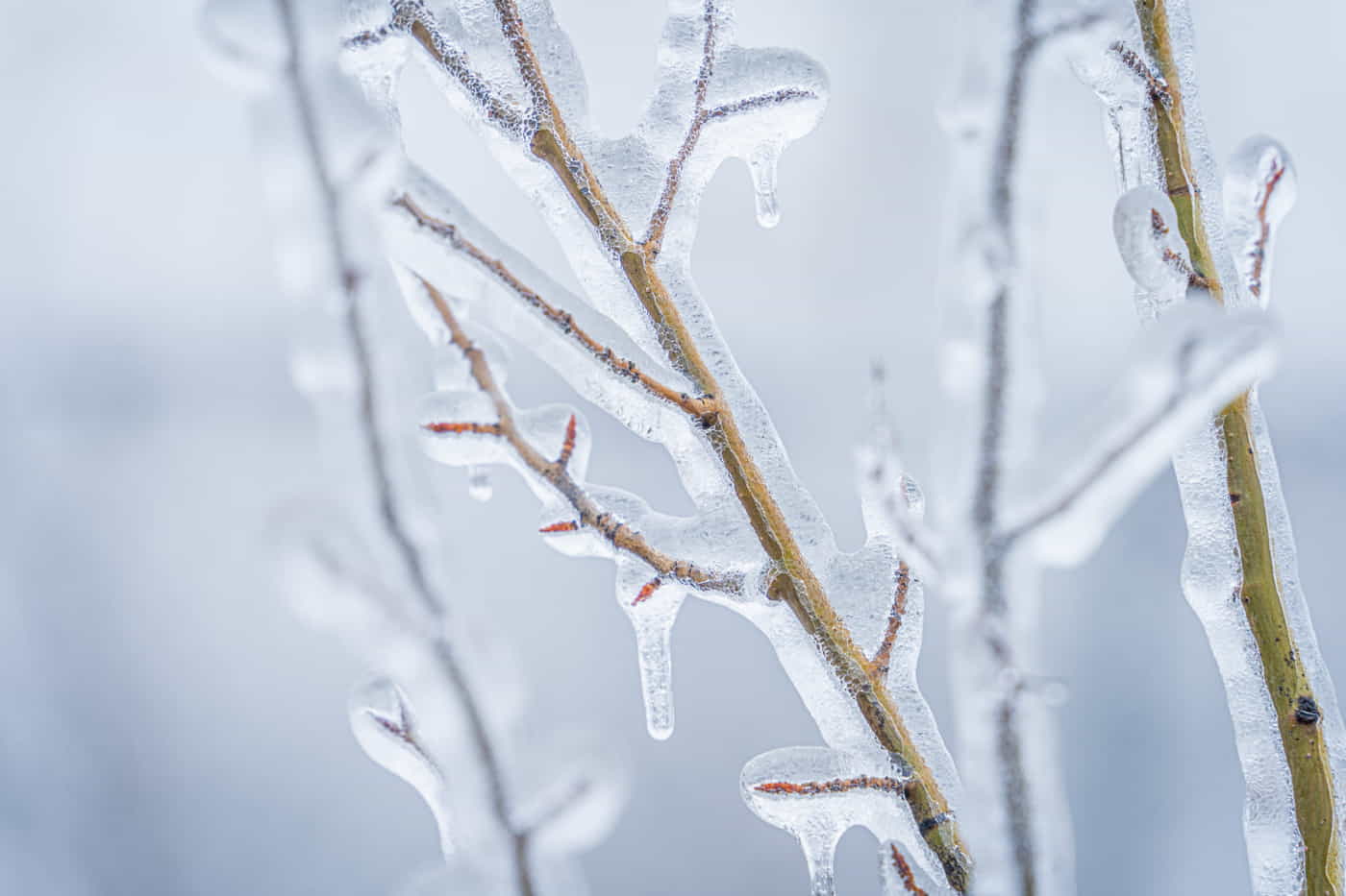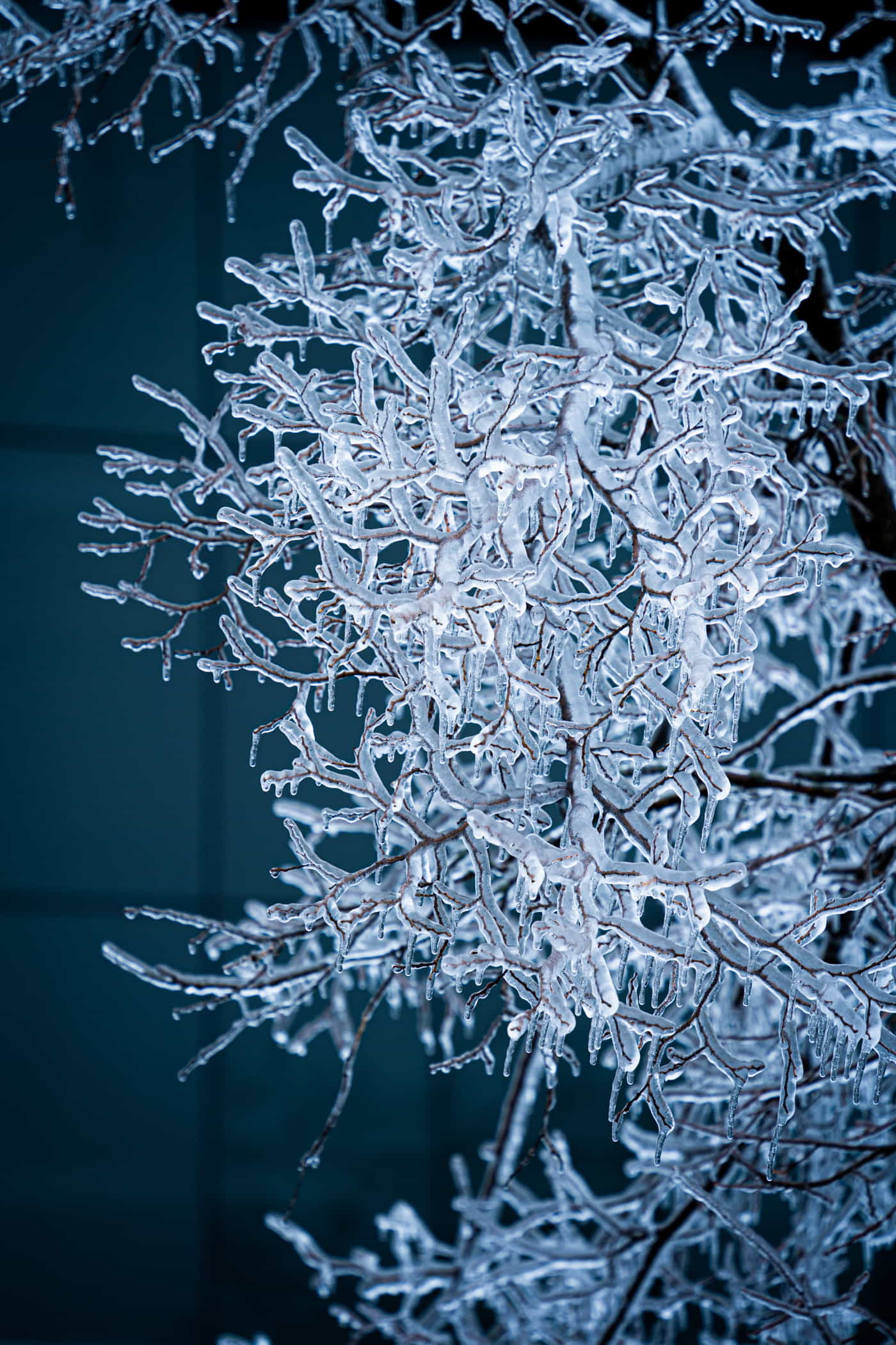 De près, la blancheur de l’arbre laisse place au transparent de la glace et on peut dessiner l’aspect allongé des branches sombres dans leur prison de glace lumineuse.