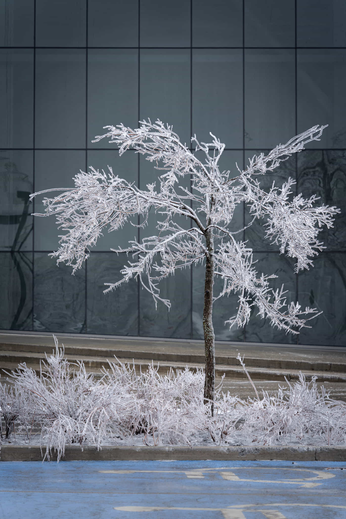 Des branches qui étaient si fines sont ici devenues plus épaisses et plus lourdes. Les branches partent dans tous les sens et c’est la glace qui nous le révèle par son éclat. La situation nous semble lumineuse malgré la nature qui est ébranlée.